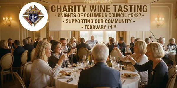 Join the Knights of Columbus Mother Seton Council #5427 for an elegant Charity Wine Tasting on February 14th at the beautiful Seasons Catering Grand Ballroom. Enjoy a curated selection of fine wines and festive fellowship, with all proceeds directly supporting our local community charitable initiatives.